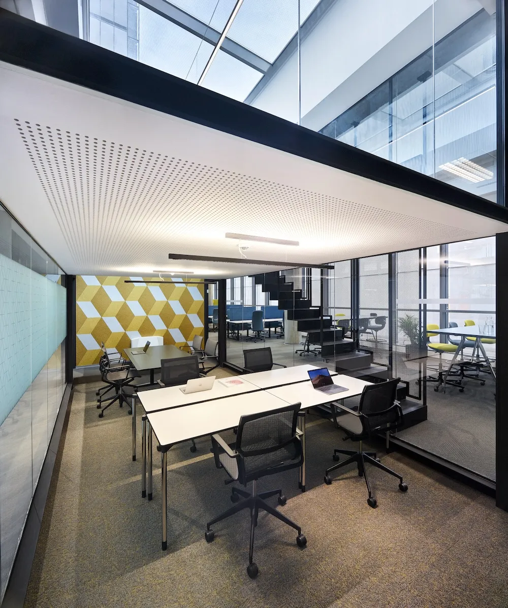 Plenty of natural light, internal end external sun blinds for optimum climate control and glare protection. Dimmable lights, high-end, ergonomic Vitra furniture.