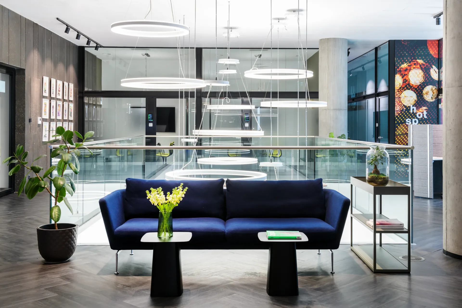 Bespoke modular office-spaces, meeting rooms and conference area make Workhub a unique experience.
