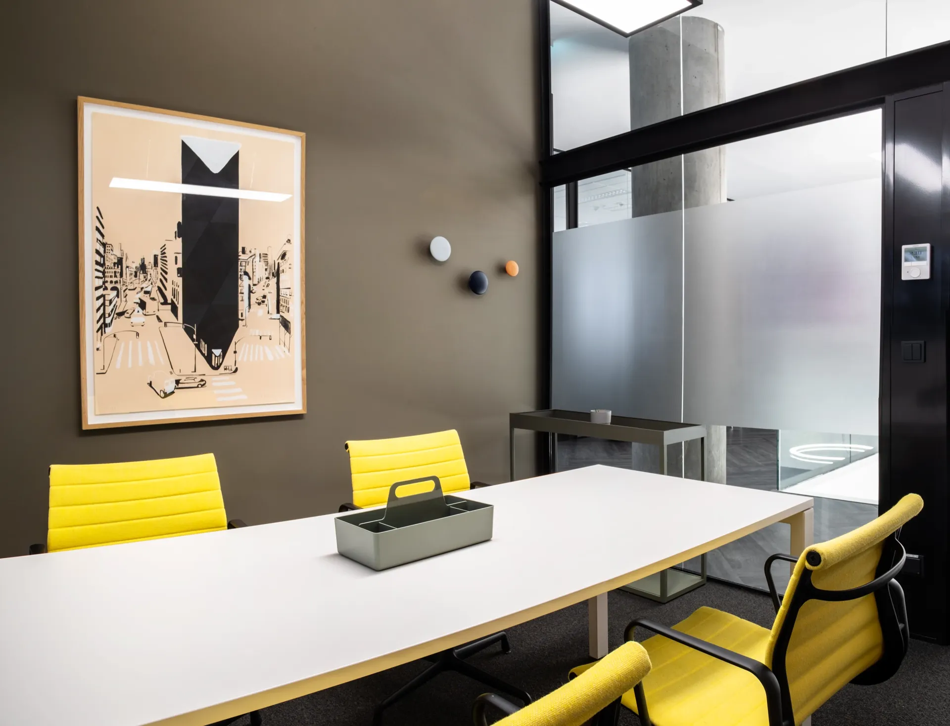 With skylight rooms, customizable lighting, top-tier ergonomic chairs, and external sun-blinds for optimal climate control, our spaces offer an experience of exclusive comfort and productivity. Our high-tech equipped rooms are perfectly designed for all types of meetings - from interviews to online and hybrid meetings to board meetings.